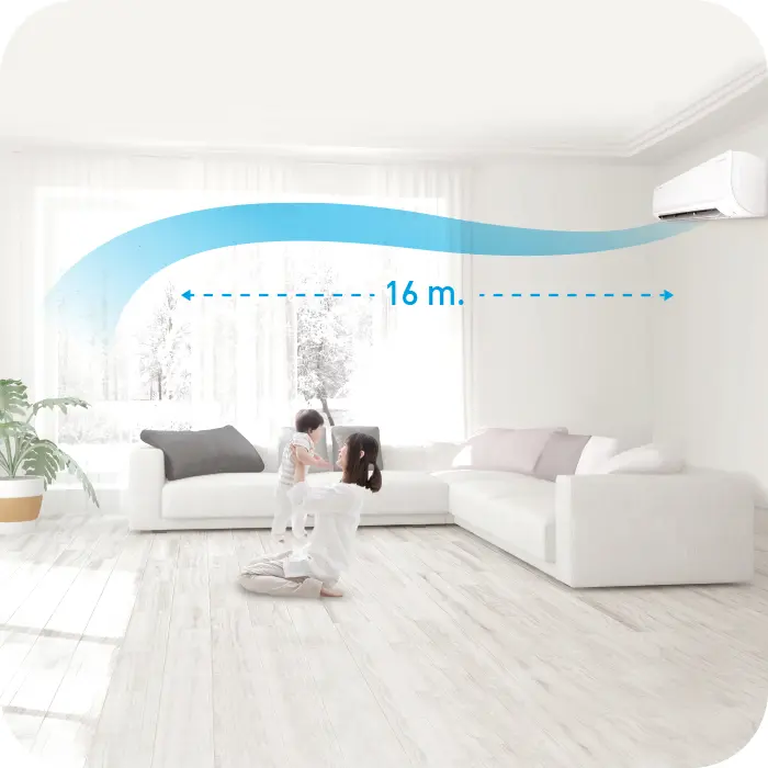 เย็นฉ่ำทั่วทั้งห้อง แม้ห้องจะยาวถึง 16 เมตร ด้วย FTKQ-XV2S อีกหนึ่งทางเลือกประหยัดพลังงานแบบคุ้มค่า ด้วยฉลากประหยัดไฟเบอร์ 5/1 ดาวและระบบตาอัจฉริยะ Intelligent Eye พร้อมดีไซน์ Coanda ที่ส่งลมไกลเรี่ยเพดานได้รวดเร็วภายใน 1 นาทีหลังแอร์เริ่มทำงาน สูดอากาศในบ้านได้สะอาดยิ่งกว่าเพราะมี Air Quality Filter ที่ช่วยกรองฝุ่น PM 2.5 พร้อมยับยั้งเชื้อโรค ลดกลิ่นไม่พึงประสงค์จากเชื้อราและแบคทีเรียด้วยฟังก์ชั่นเป่าไล่ความชื้น
