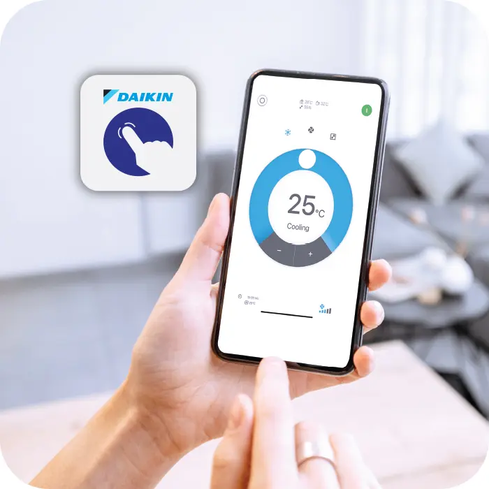 เข้าถึงการใช้งานเครื่องปรับอากาศได้โดยง่าย ด้วยระบบ Wifi ที่ติดตั้งมาให้ในตัวเครื่อง สามารถควบคุมการทำงานของเครื่องปรับอากาศได้ทุกที่ทุกเวลาด้วยสมาร์ตโฟนผ่าน Daikin Mobile Controller Application